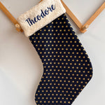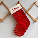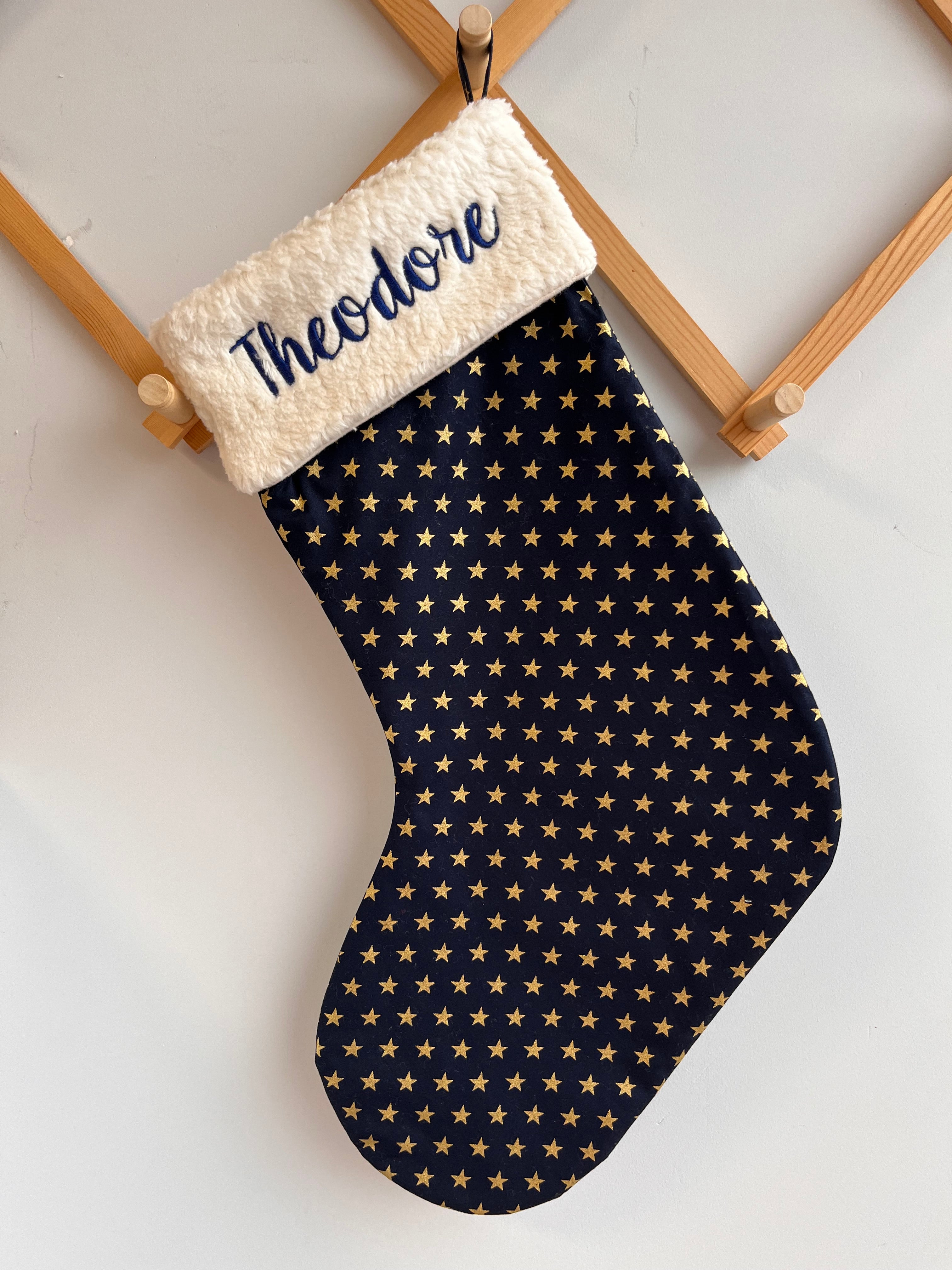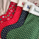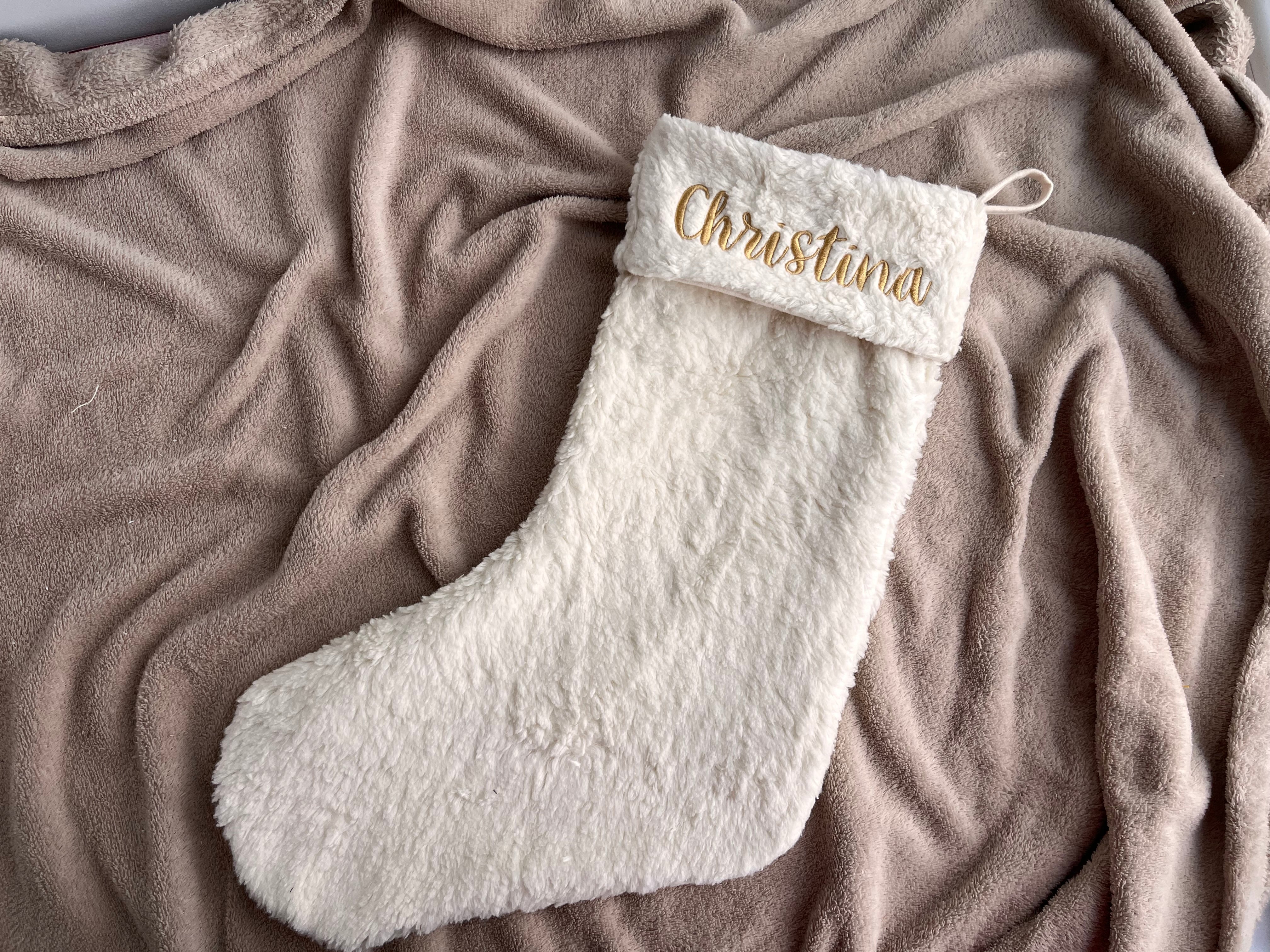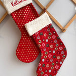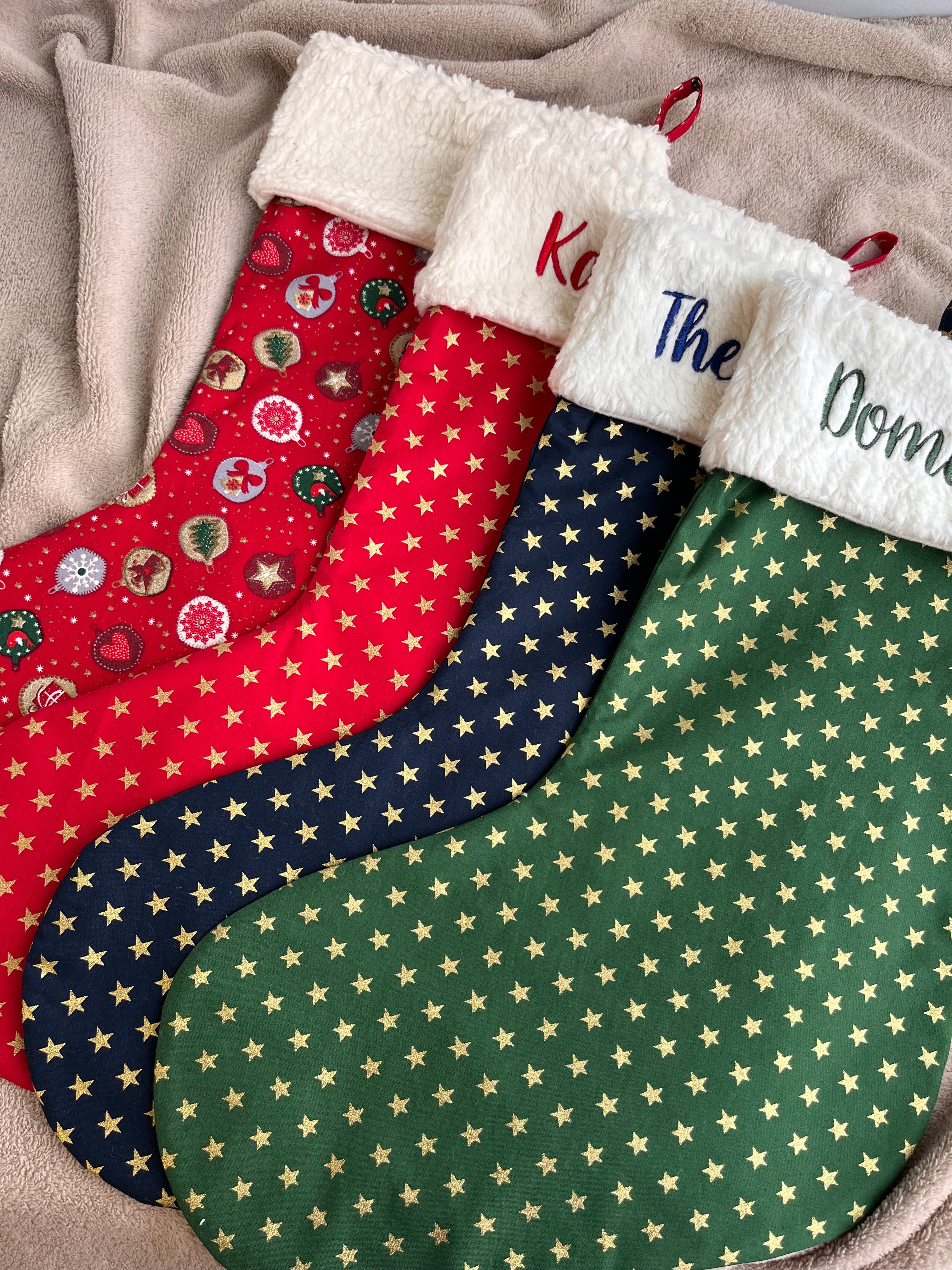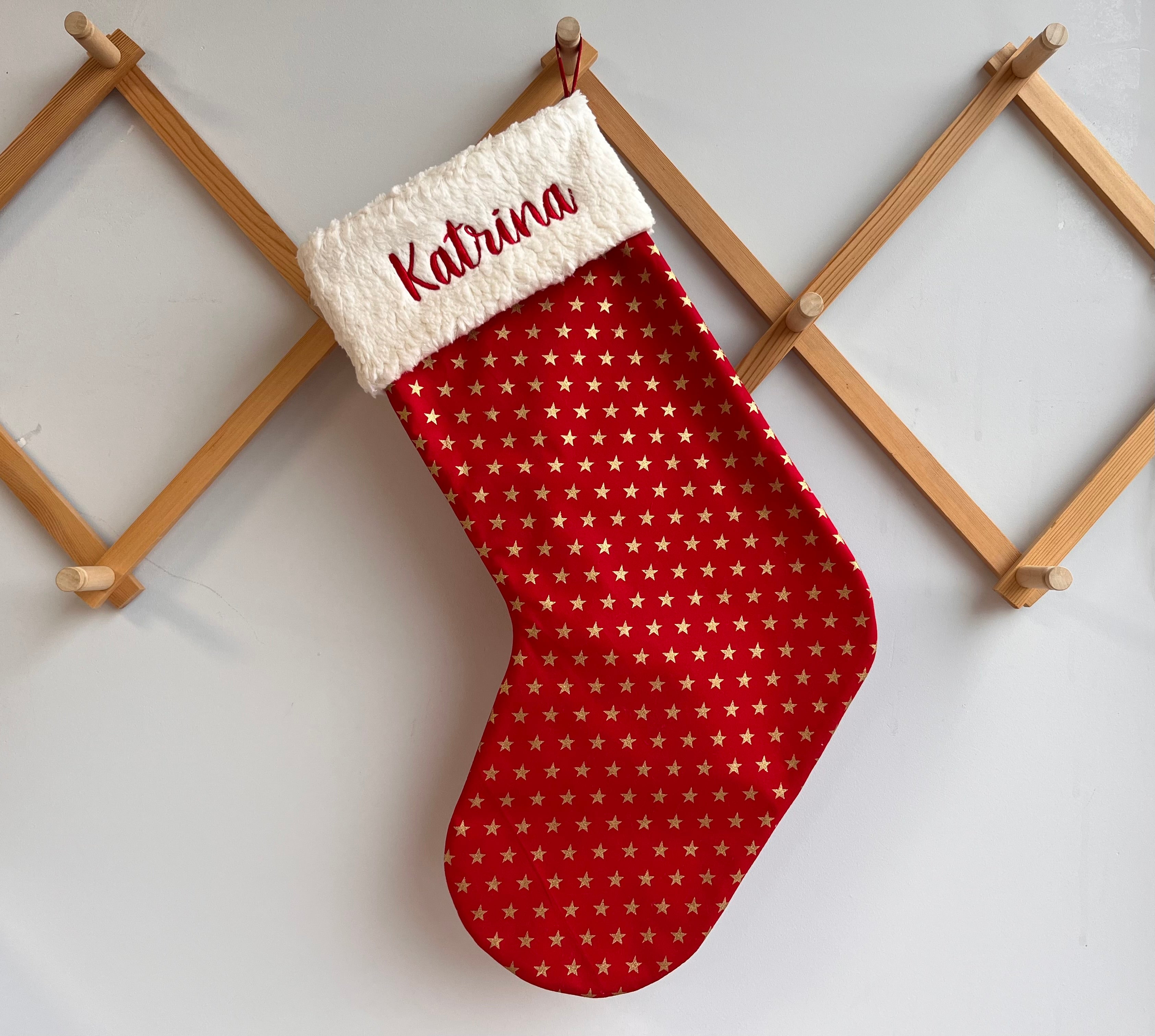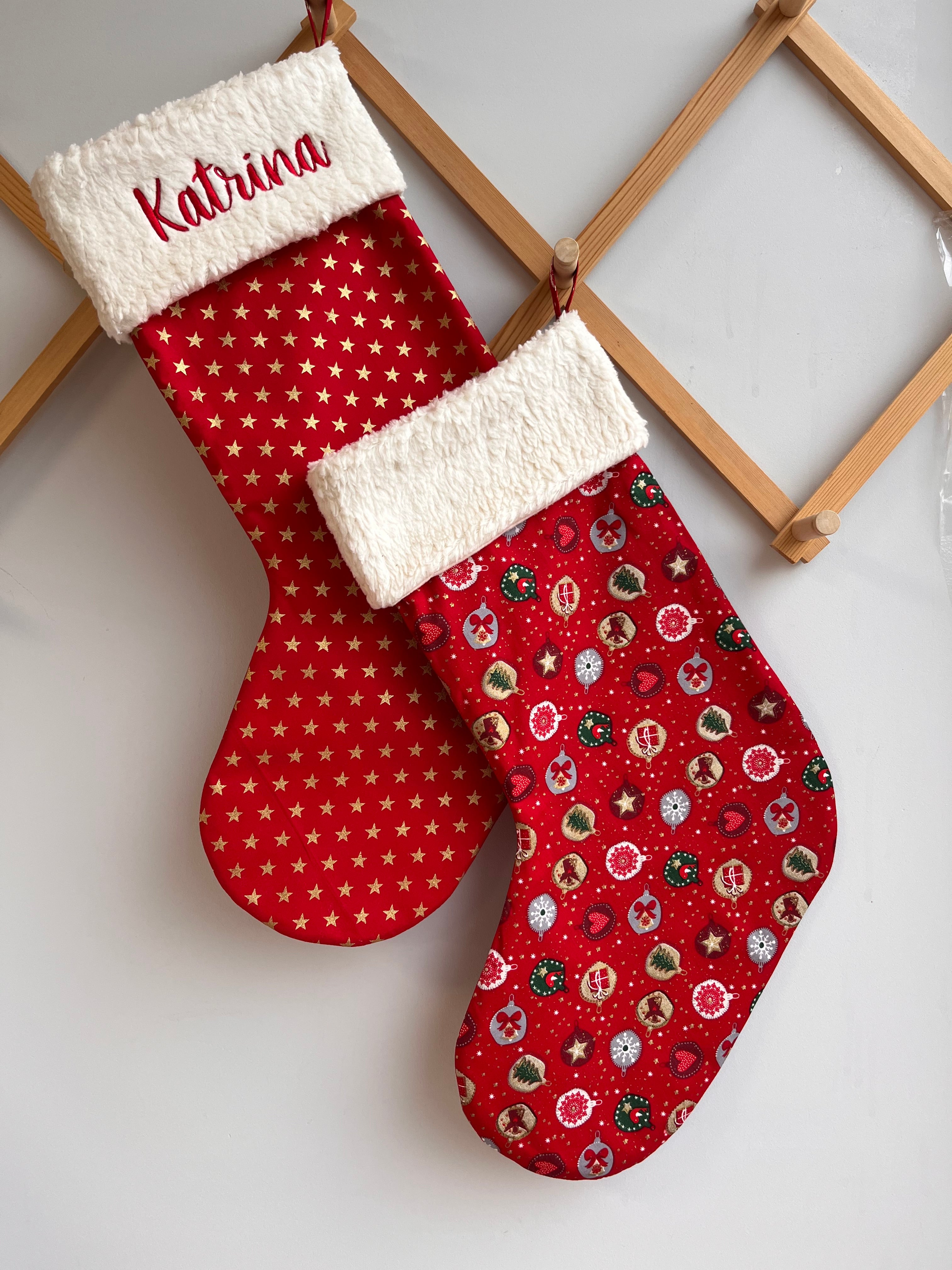 Personalizētas Ziemassvētku zeķes ar izšūtu vārdu – 8 svētku raksti, 6 diegu krāsas, ierobežots daudzums