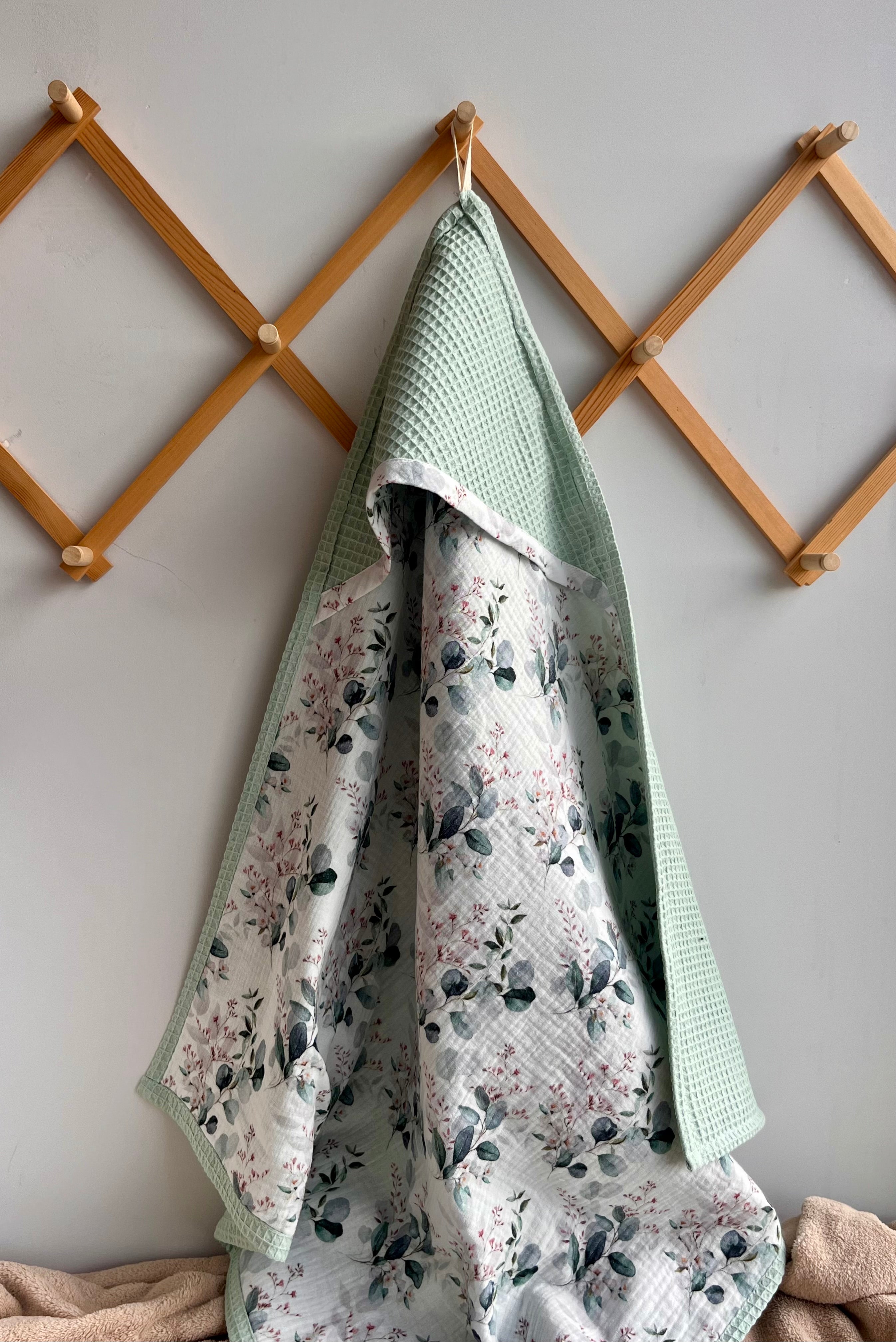 Green mint baby towel with eucalyptus print