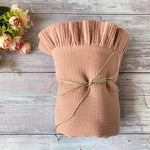 Brīnišķīgs dāvanu komplekts jebkuram mazulim – eleganta muslīna sedziņa ar volānu un pieskaņota miega lupatiņa - zaķis.